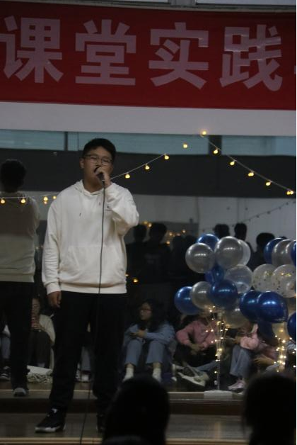 郝亮老师激情献唱,大气236班汪浩同学的《说了再见》,大气234班的马晓梅同学带来的歌曲《飞》以及学生会活动部吕俊旭同学的《瞬》让我们享受了一场听觉盛宴。