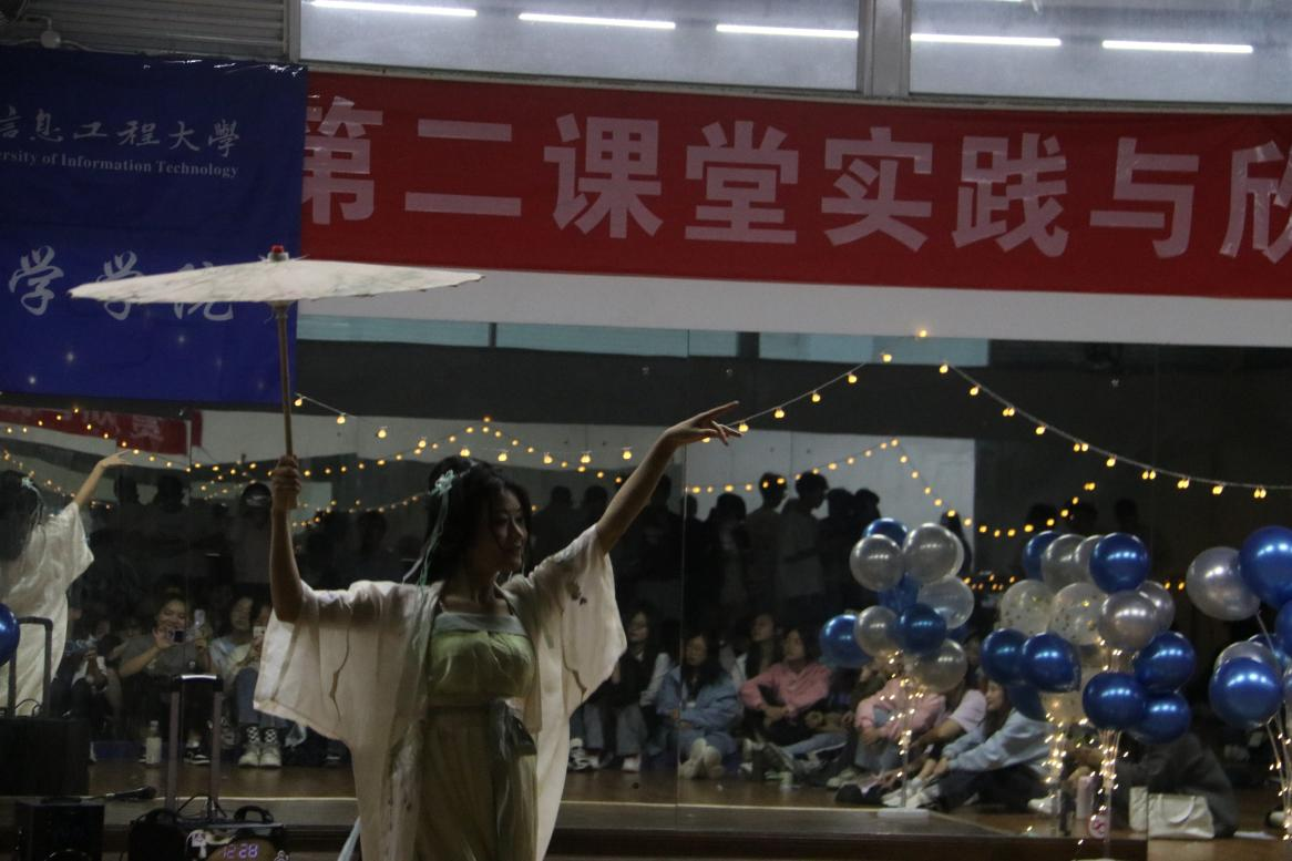 琴声悠悠,时而婉转,时而激昂。大气235班的杨蕊菡用扬琴带领我们感受那份伴有古典韵味的音乐力量,琴竹与琴弦碰撞出一曲美妙篇章。“楚河流沙几聚散,日月沧桑尽变换。”《虞兮叹》,大气232班赵文萱同学的戏腔荡气回肠,令人回味无穷。