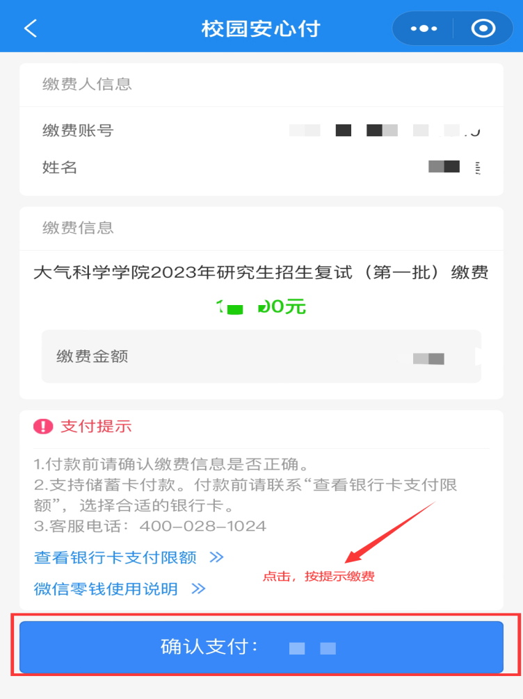 第七步,按提示完成缴费。