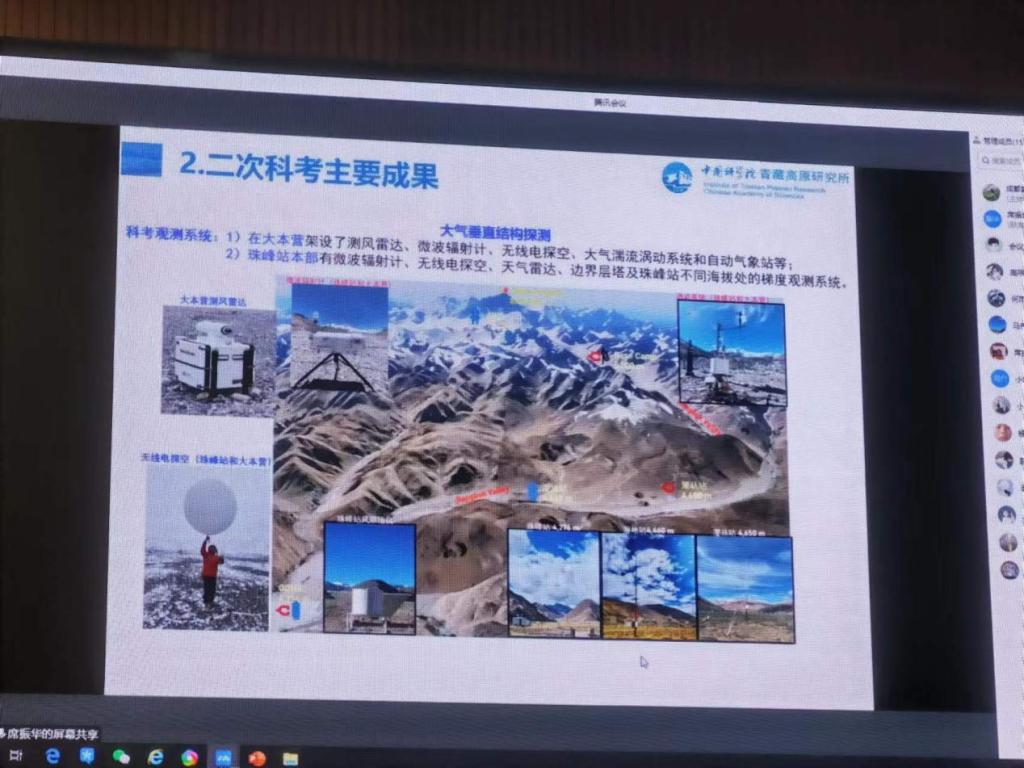 张莉致欢迎辞并介绍了此次科普活动的背景。文军向老师和同学们介绍了青藏高原气象学研究的重要性和科学普及和知识传播的必要性。席振华以“第二次青藏科考‘巅峰使命’和背后故事”为主题为现场成都棠湖外国语学校近200余名师生带来了精彩的科普讲座,并通过云端直连互动,让成都现场的观众们深度了解了珠峰观测站的各种观测仪器及作用,揭秘珠峰观测站的工作及贡献。马伟强在线上与同学们互动,回答了同学们关于青藏科考和四川盆地天气气候及环境变化的一系列相关气象科学问题。现场气氛活跃,此次活动深受师生的喜爱,获得广泛好评。