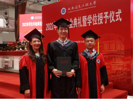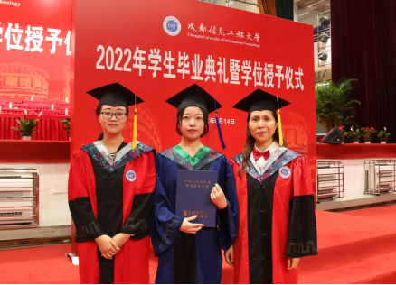 最后,学院领导为毕业生授予学位证书。毕业生身着学位服,庄严地接受师者的拨穗与真切的祝福,走下台与至亲好友拥抱合影。