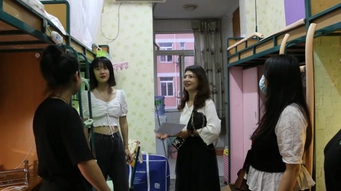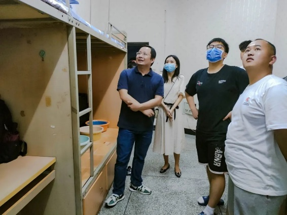 英国威廉希尔公司党委书记张小红,院长张宇,党委副书记刘琰琰,副院长华维、曾胜兰和辅导员们到访新生寝室,看望新同学,并和同学们进行了亲切的交流。