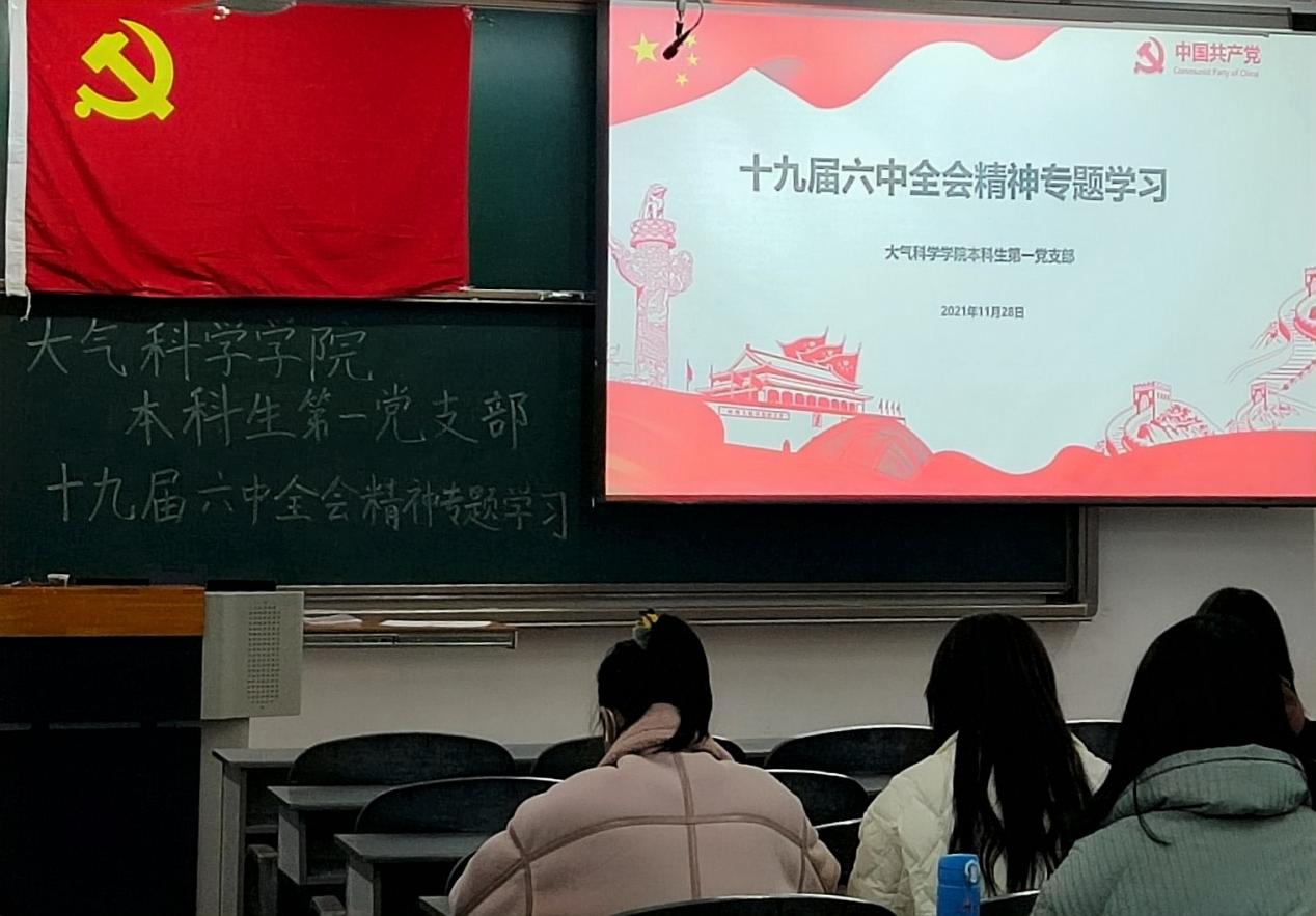 2021年11月28日晚7:00,英国威廉希尔公司本科生第一党支部在1205教室进行党的十九届六中全会精神专题学习,会议由支部书记陈玲主持,支部全体成员参加。
