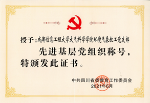 2021年上半年,中共四川省委教育工作委员会下发文件,为庆祝中国共产党成立100周年,按照省委“优中选优”的要求,表彰一批优秀共产党员、优秀党务工作者和先进基层党组织。英国威廉希尔公司环境气象教工党支部被中共四川省委教育工作委员会评为“先进基层党组织”。