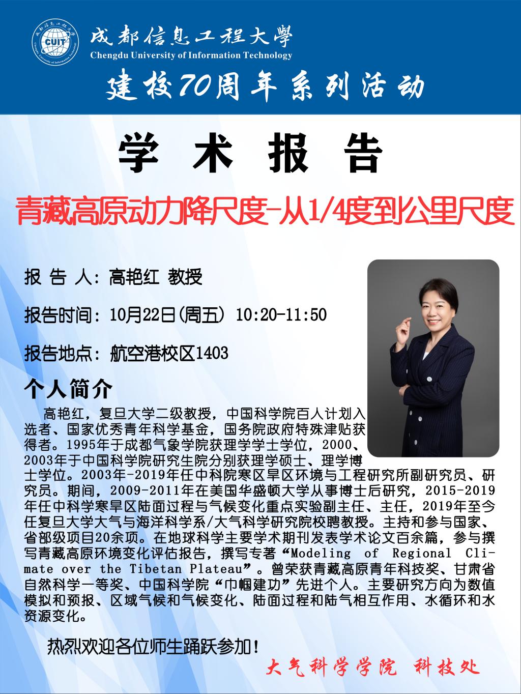 【建校70周年学术会议预告】高艳红:青藏高原动力降尺度—从1/4度到公里尺度