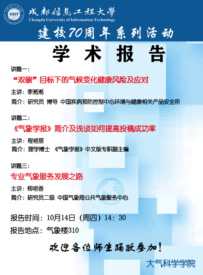 【建校70周年学术会议预告】林湉湉、程艳丽、柳艳香三位教授来院作特邀学术报告