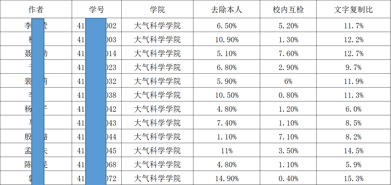 2022年秋季学期研究生学位论文学术不端检测(第一次)结果