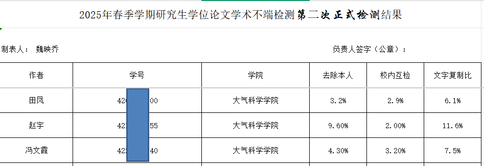 2025年春季学期研究生学位论文学术不端检测第二次正式检测结果